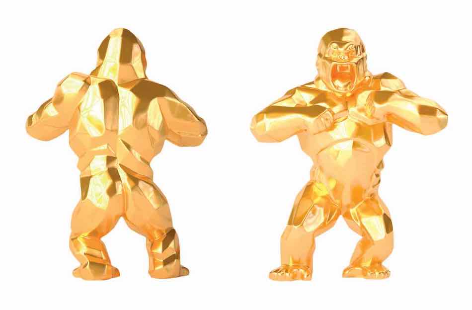 Gorille gold (Wild Kong) - Résine - 37/52/80/110/150/180/230/300 cm Couleurs basiques noir/bleu mauritius/orange/rose/rouge/bleu sams/bleu twitter/blanc - Edition de 8 exemplaires